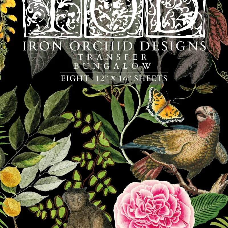 IOD DECOR TRANSFER™ 「Bungalow」 木製品や金属にこすって貼るシールです。 南国のオリエンタルな世界観を映したデザイン。